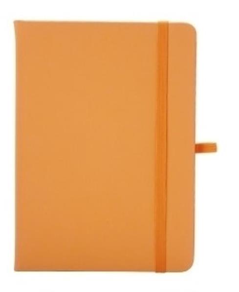 Caderneta emborrachada com suporte para caneta, elástico para lacre e marcador de página em cetim, contém aproximadamente 80 folhas com pauta na cor branca. Tamanho 17,7x12,5 cm